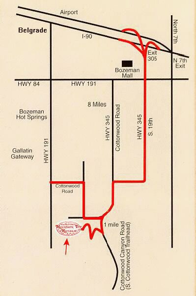 Fly to Bozeman Yellowstone International Airport (BZN); it is located in Montana between Bozeman and Belgrade. Follow the signs directing you toward Big Sky, Montana. About a mile after Gallatin Gateway, turn east off of Hwy. 191 onto Cottonwood Rd.